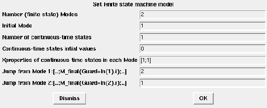 In the interface window, the number of control modes, the initial control mode and the initial value of continuous-time state at the beginning of the simulation should be given.