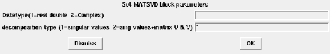 The MATSING block computes the economy sized SVD of the M-by-N input matrix A by finding U,S and V such that