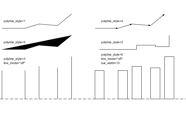 If the value is 3 the polyline produces a bar plot. For each given point (x,y) a vertical line is drawn from (x,y) to (x,0).