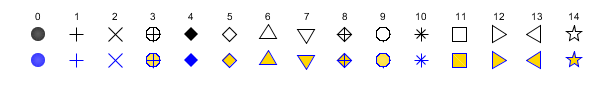 stands for: dot, plus, cross, star, filled diamond, diamond, triangle