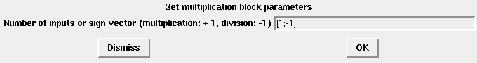 The Product block performs multiplication or division of its inputs. This block produces outputs using either element-wise or matrix multiplication, depending on the value of the Multiplication parameter. You specify the operations with the Number of inputs parameter. Multiply(+1) and divide (-1) characters indicate the operations to be performed on the inputs.