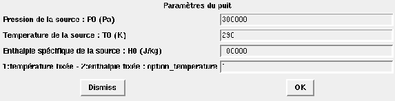Enthalpie spécifique de la source : H0 (J/kg)