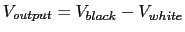 This component is used to measure the voltage difference between two nodes in an electrical circuit. The output signal is the difference between the voltages of the black port and the white port, ,