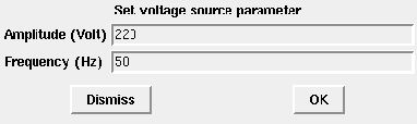 This component is an AC voltage source with sinusoid output voltage. The amplitude and the frequency of the output voltage is set by the user. The ohmic resistance of this block is zero.
