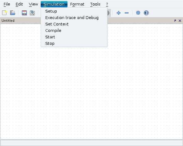 Select the Compile menu item to compile the block diagram. This menu item need never be used since compilation is performed automatically, if necessary, before the beginning of every simulation (Run menu item). Normally, a new compilation is not needed if only system parameters and internal states are modified. In some cases however these modifications are not correctly updated and a manual compilation may be needed before a Restart or a Continue. Please report if you encounter such a case.